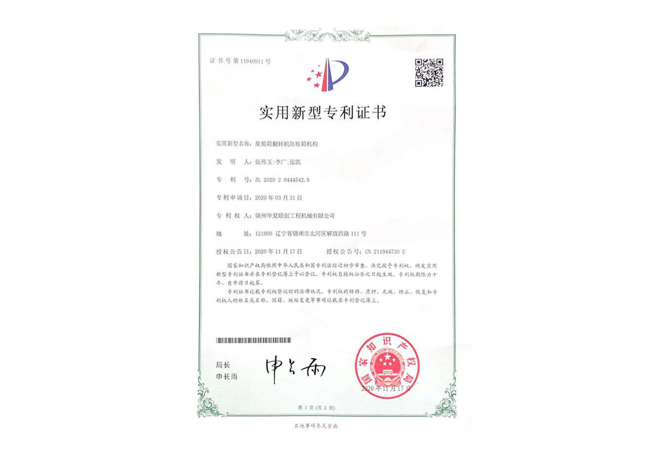 華夏聯(lián)創(chuàng)集團創(chuàng)始于2005年,憑借公司品牌優(yōu)勢、技術(shù)優(yōu)勢、人才優(yōu)勢、資金優(yōu)勢,以數(shù)十年磨一劍的博觀約取、厚積薄發(fā),自主研制生產(chǎn)具有先進水平的集裝箱翻轉(zhuǎn)機,翻轉(zhuǎn)平臺,智能化液壓翻板汽車裝卸。為用戶提供各種集裝箱裝卸設備、火車集裝箱、船舶裝卸機等自動裝卸設備。公司逐步形成了以工程機械為核心、擁有自主知識產(chǎn)權(quán)、在國內(nèi)具有一定影響力的企業(yè)。華夏聯(lián)創(chuàng)公司自成立以來,產(chǎn)品銷量持續(xù)高速增長,實現(xiàn)了跨越式發(fā)展,已經(jīng)成為行業(yè)知名品牌。